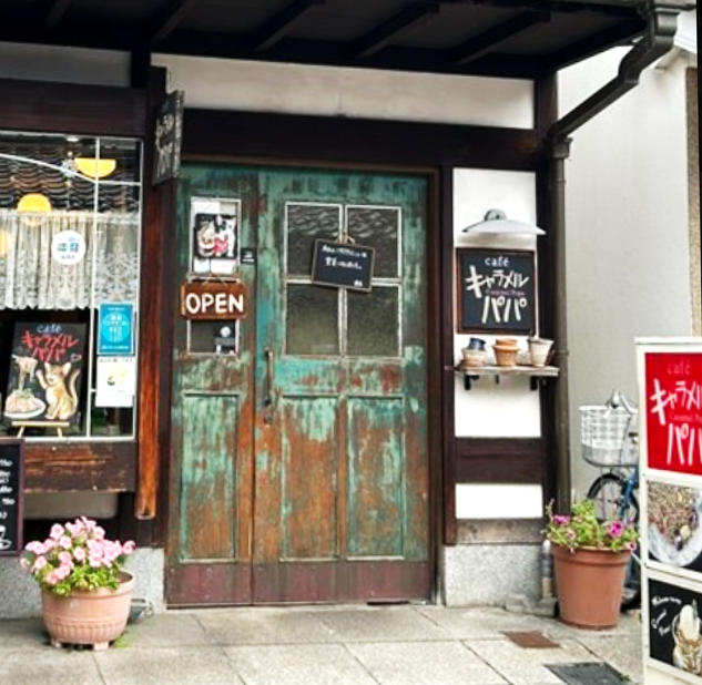長浜市の観光スポット、黒壁スクエアからもほど近い場所にある隠れ家的なカフェ「キャラメルパパ」。