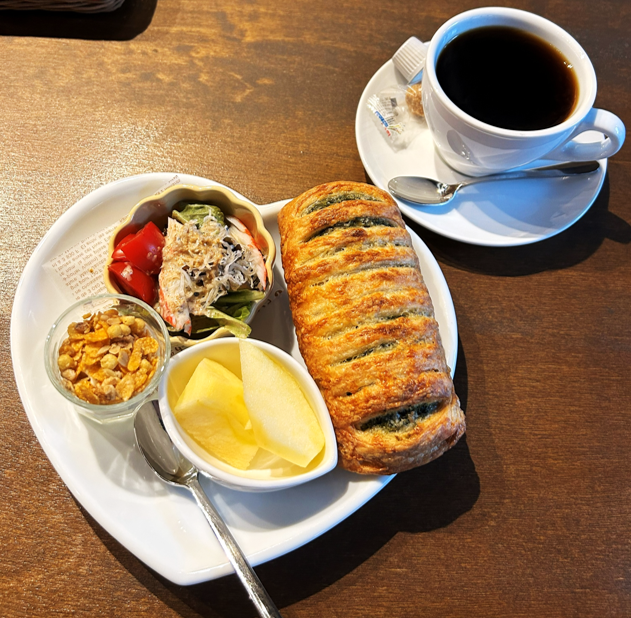 ほうれん草のパンが珍しいと思い、そちらをオーダー。