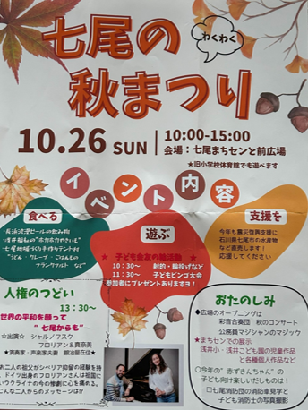 10月26日はぜひ「七尾の秋まつり」のイベントにお越しくださいませ。