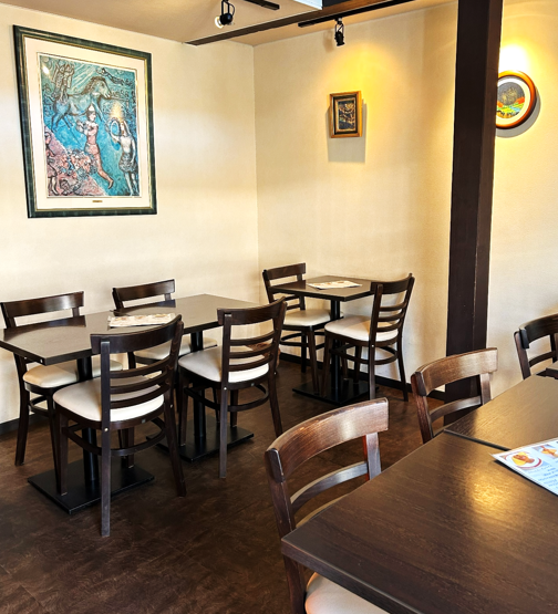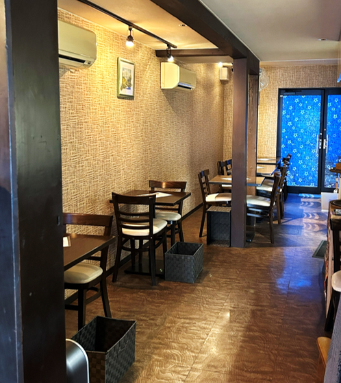 二人掛けのテーブルと、四人掛けのテーブルがあります。お一人様でも入りやすいお店ですよ。