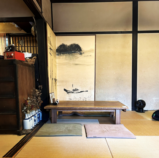 築200年の歴史のある商家のお店。畳のお部屋でお食事をいただくスタイルです。